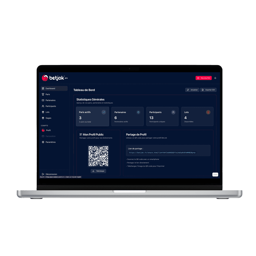 Betjok Pro : engagez vos fans, boostez vos partenaires. Une solution simple pour transformer l’émotion en action.