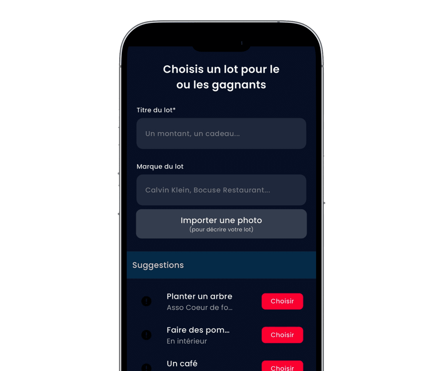 Ajoutez partenaires, sponsors et lots. Téléchargez logos ou images pour rendre votre pari attractif.