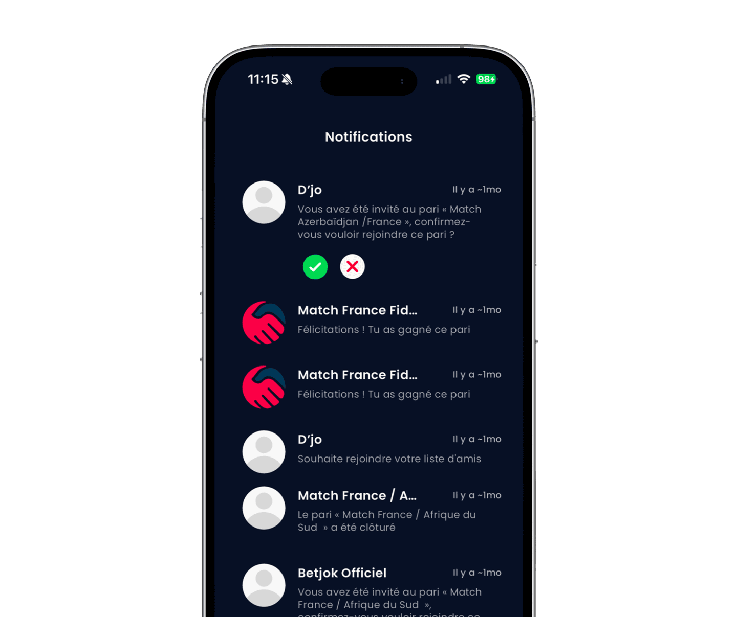 Maintenez l’engagement grâce aux notifications et relances automatiques. Rappelez aux joueurs de participer, partagez des updates et créez de l’animation autour du pari pour garder votre communauté motivée jusqu’à la fin.