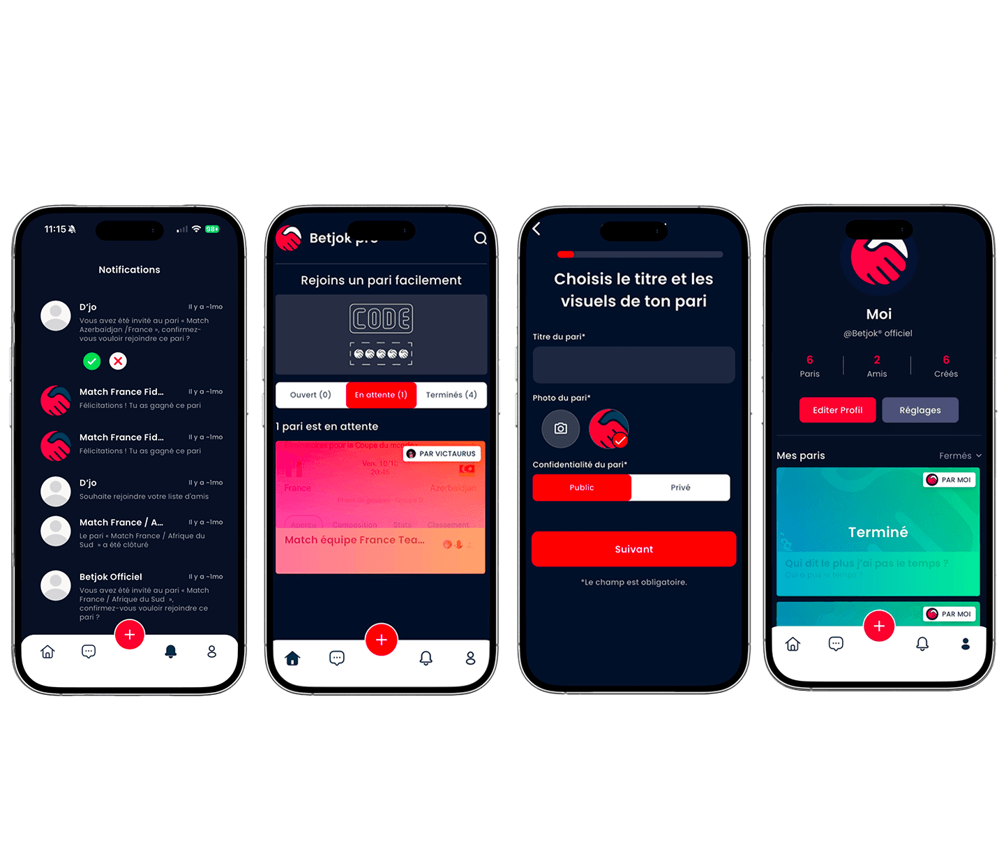 Betjok Pro n’est pas seulement une application de divertissement : c’est votre partenaire digital pour booster l’engagement. Avec des paris ludiques et gratuits pour vos supporters, vous créez un rendez-vous régulier qui renforce le lien avec votre communauté.